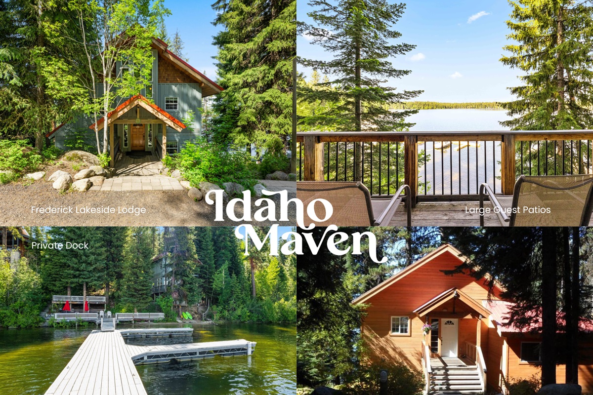 8 Bedrooms • 6 Bathrooms (2 full, 4 half) 6 Baths (2 full, 4 half) • Sleeps 10-18Two lake homes. One unforgettable McCall getaway. Book Frederick Lakeside Lodge + Hawk’s Nest Lodge together for a rare, side-by-side retreat on the peaceful east arm of Payette Lake. Just steps to the a sandy beach, lakefront decks, private marina (6 guest slips, seasonal) and lakeside restroom, these twin-home accommodations are perfect for reunions, multi-family trips, and small group retreats. Across both homes you’ll enjoy 8 bedrooms (including 4 king bedrooms with private lake-view balconies), 4 full baths + 2 half baths (one seasonal by the lower deck), two fully equipped kitchens, and two cozy great rooms anchored by river-rock gas fireplaces. Outside, expansive view decks with year-round BBQs make sunset dinners a tradition. Stay connected with fast Wi-Fi and wind down with Smart TVs/Dish, Blu-ray players, and a family-friendly DVD library. Ample on-site parking keeps logistics easy. When you’re ready to explore, you’re minutes to downtown McCall for shops and dining, ~1–1.5 miles to McCall Golf Club, ~3 miles to Ponderosa State Park, and ~16.9 miles to Brundage Mountain for winter powder.